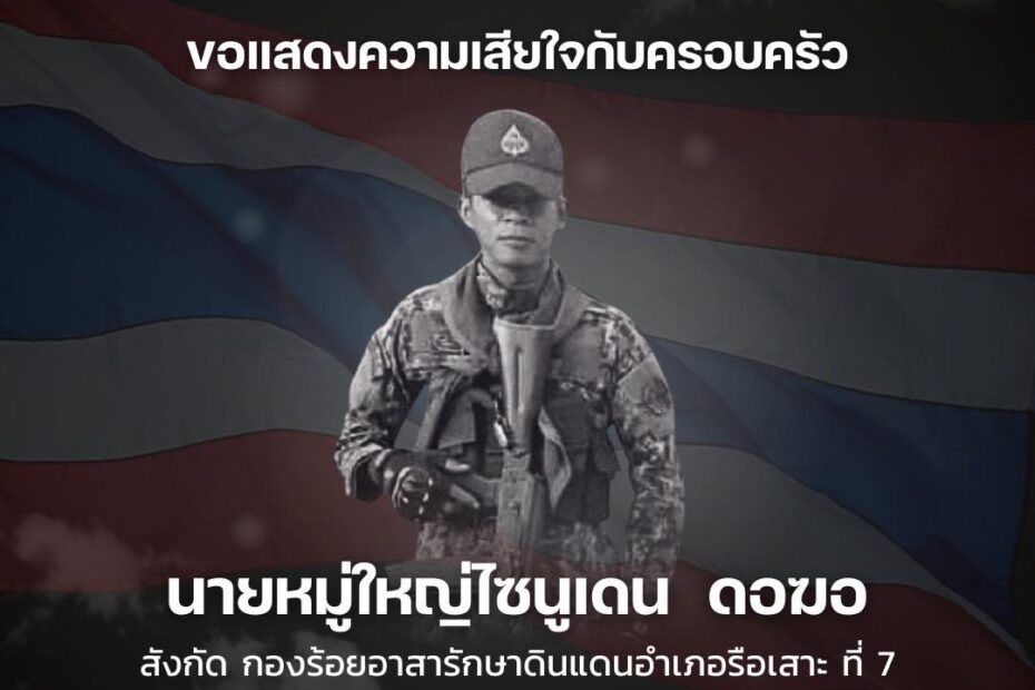 ขอแสดงความเสียใจกับครอบครัว นายหมู่ใหญ่ ไซนูเดน ดอฆอ สังกัดกองร้อยอาสารักษาดินแดนอำเภอรือเสาะ ที่ 7 DopaAdmin28 ตุลาคม 25ไฮไลท์