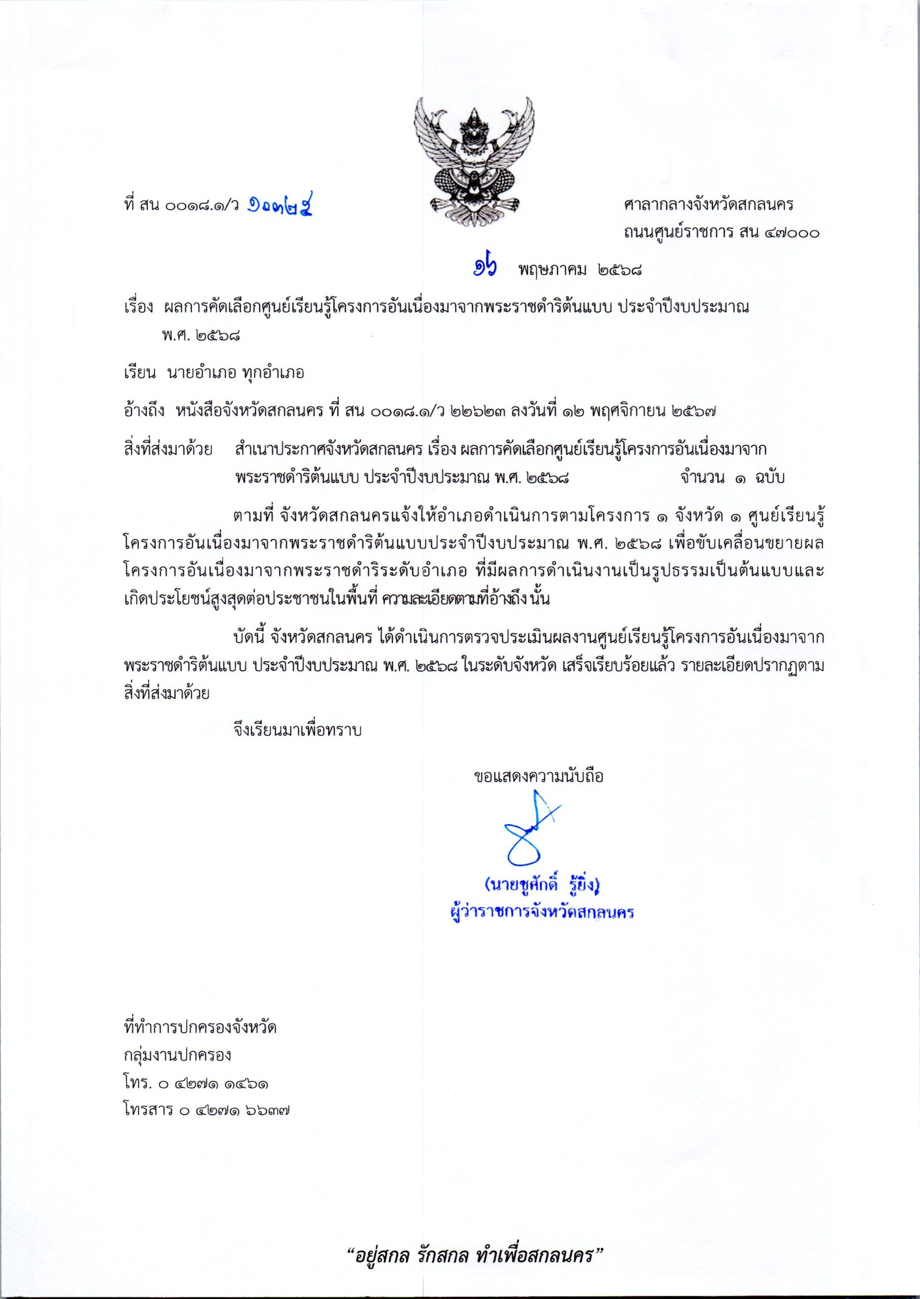 หนังสือจังหวัดสกลนคร ด่วนที่สุด ที่ สน 0018.1/ว 10254 ลงวันที่ 16 พฤษภาคม 2568 เรื่อง การดำเนินโครงการพัฒนาศักยภาพกลุ่มโครงการเศรษฐกิจพอเพียงในชุมชน ตามพระราชดำริ สมเด็จพระกนิษฐาธิราชเจ้า กรมสมเด็จพระเทพรัตนราชสุดา ฯ สยามบรมราชกุมารี ประจำปีงบประมาณ พ.ศ. 2568 เรียน นายอำเภอเมืองสกลนคร และอำเภอโคกศรีสุพรรณ DopaAdmin16 พฤษภาคม 25กลุ่มงานปกครอง, ข่าวประชาสัมพันธ์, ประกาศ/ระเบียบ/ดาวน์โหลด