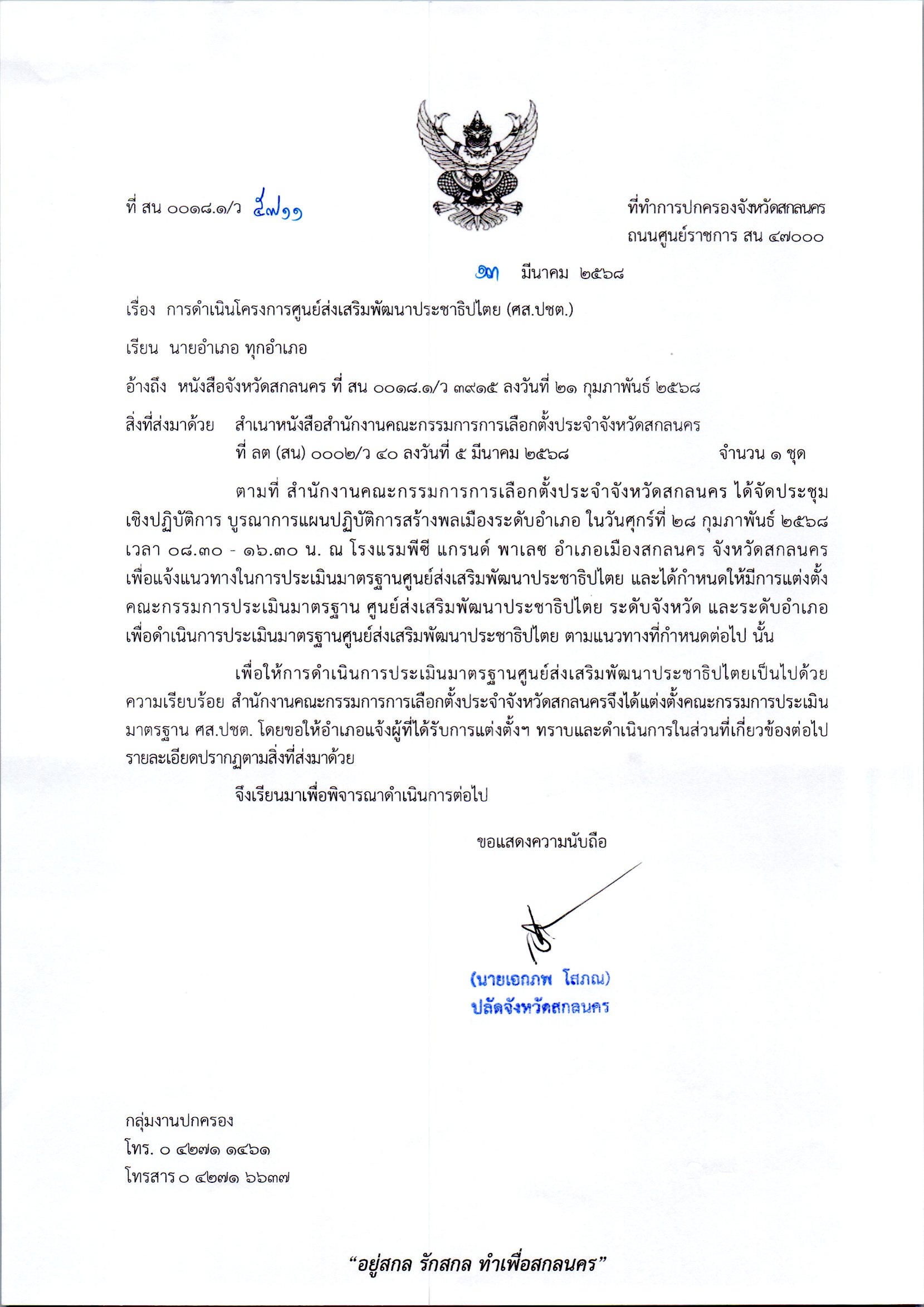 ที่ สน 0018.1/4871 ลงวันที่ 5 มีนาคม 2568 เรียน นายอำเภอสว่างแดนดิน เรื่อง การย้ายข้าราชการ DopaAdmin5 มีนาคม 25กลุ่มงานปกครอง, ประกาศ/ระเบียบ/ดาวน์โหลด