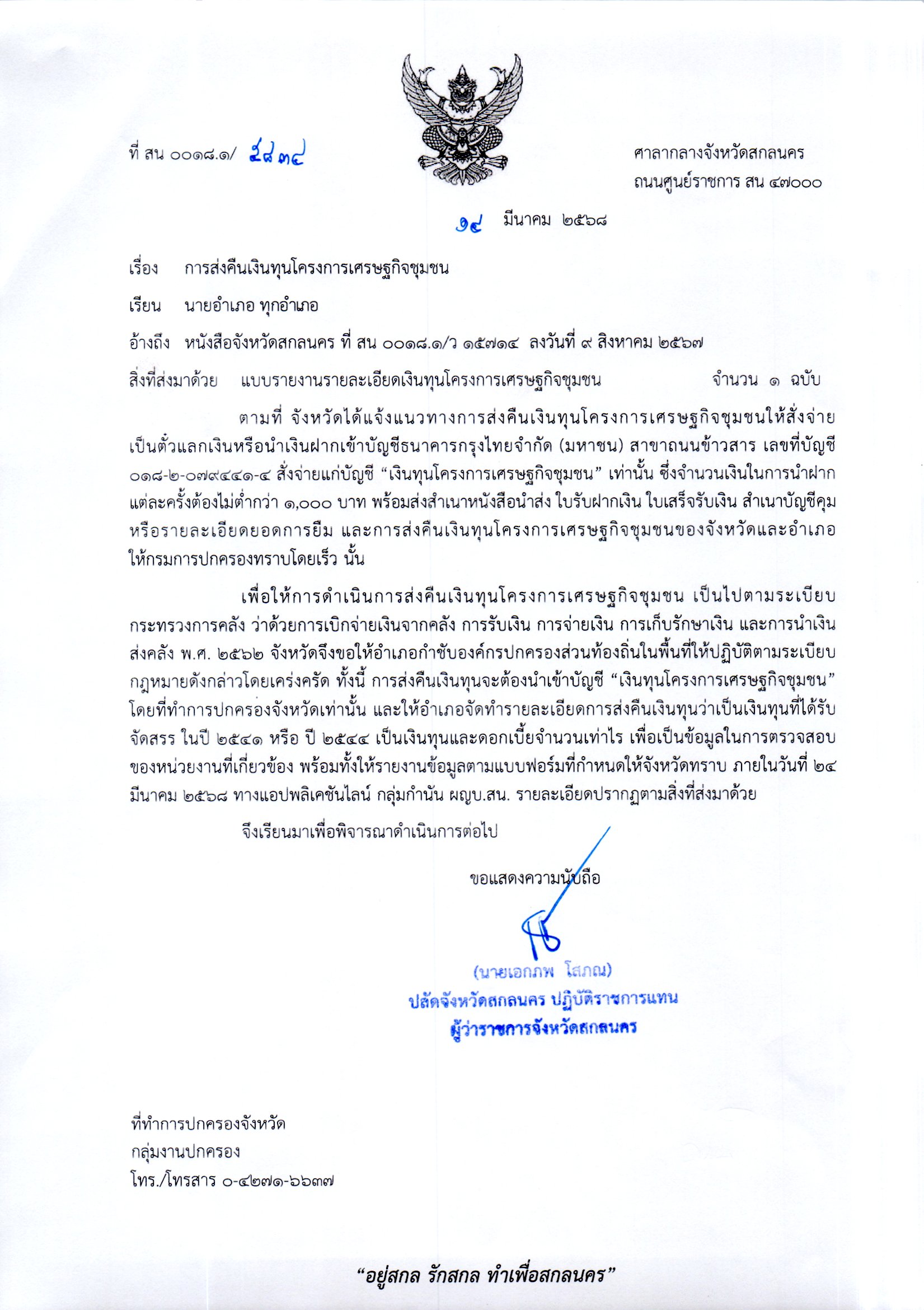 หนังสือจังหวัดสกลนคร ที่ สน 0018.1/4932 ลงวันที่ 5 มีนาคม 2568 เรื่อง จัดตั้งหมู่บ้านใหม่ เรียน นายอำเภอวานรนิวาส DopaAdmin6 มีนาคม 25กลุ่มงานปกครอง, ข่าวประชาสัมพันธ์, ประกาศ/ระเบียบ/ดาวน์โหลด
