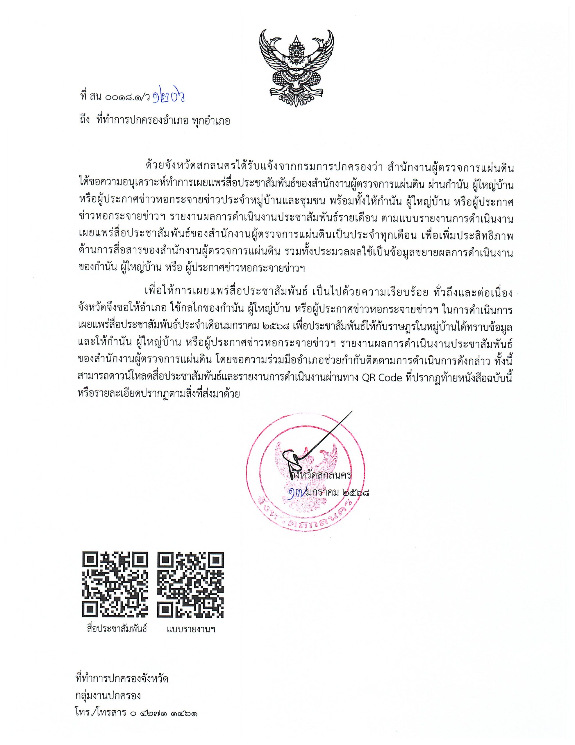 หนังสือจังหวัด ที่ สน 0018.1/ว 1206 ลงวันที่ 17 มกราคม 2568 เรื่อง การเผยแพร่สื่อประชาสัมพันธ์ของสำนักงานผู้ตรวจการแผ่นดิน ประจำเดือนมกราคม 2568 เรียน นายอำเภอ ทุกอำเภอ DopaAdmin17 มกราคม 25กลุ่มงานปกครอง, ข่าวประชาสัมพันธ์, ประกาศ/ระเบียบ/ดาวน์โหลด