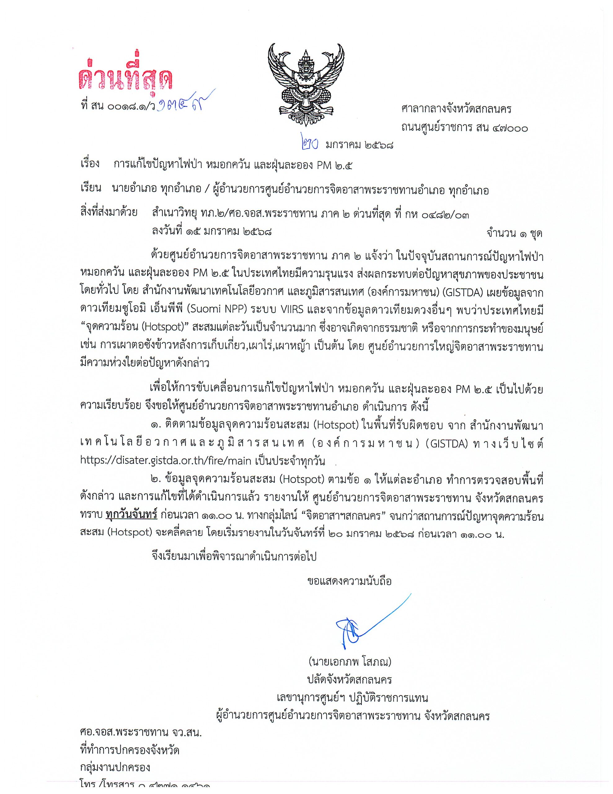 หนังสือจังหวัด ด่วนที่สุด ที่ สน 0018.1/ว 1349 ลงวันที่ 20 มกราคม 2568 เรื่อง การแก้ไขปัญหาไฟป่า หมอกควัน และฝุ่นละออง PM 2.5 เรียน นายอำเภอ ทุกอำเภอ / ผู้อำนวยการศูนย์อำนวยการจิตอาสาพระราชทานอำเภอ ทุกอำเภอ DopaAdmin20 มกราคม 25กลุ่มงานปกครอง, ข่าวประชาสัมพันธ์, ประกาศ/ระเบียบ/ดาวน์โหลด