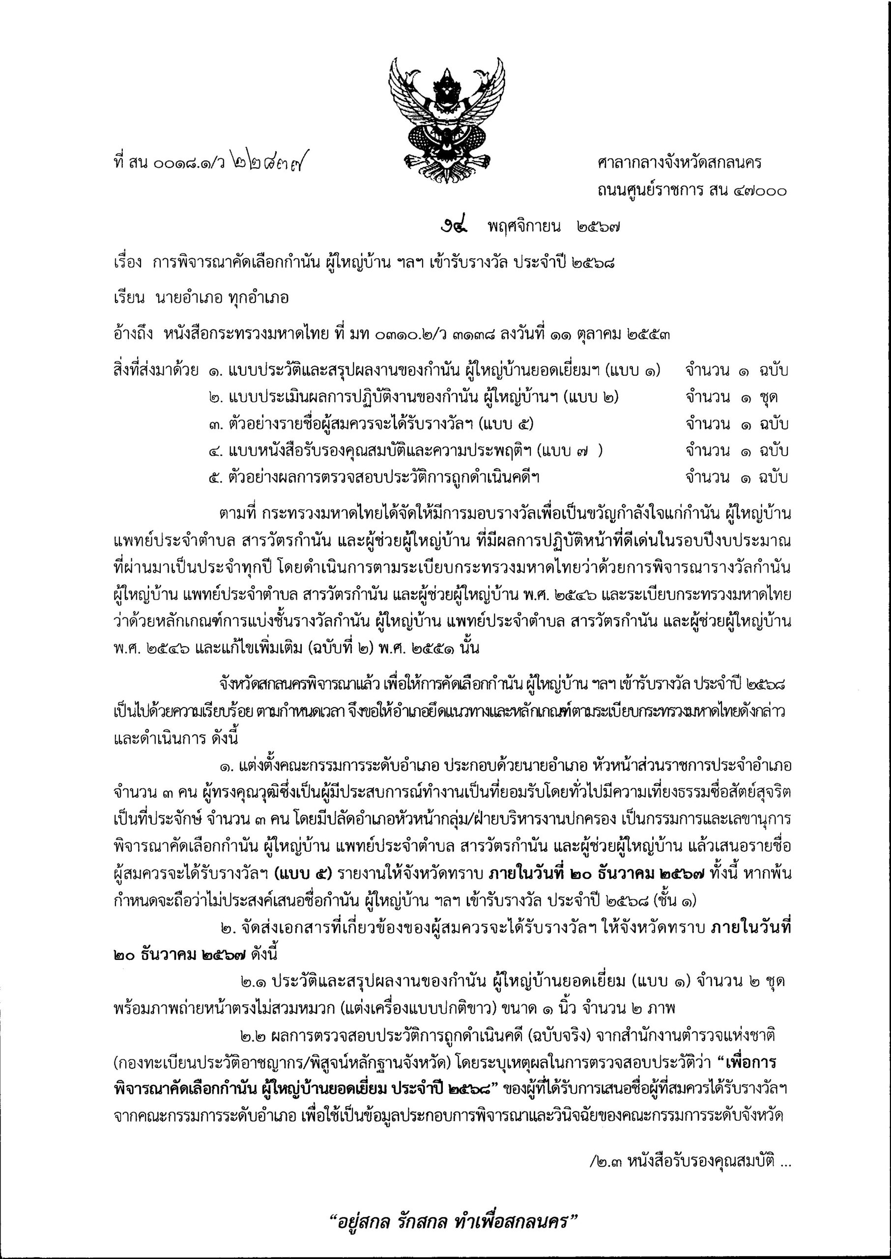 หนังสือจังหวัดสกลนคร ที่ สน 0018.1/ว 23497 ลงวันที่ 22 พ.ย. 67 เรียน นายอำเภอ ทุกอำเภอ เรื่อง การสนับสนุนค่าใช้จ่ายในการประชุมคณะกรรมการหมู่บ้าน (กม.) ประจำปีงบประมาณ พ.ศ. 2568 DopaAdmin22 พฤศจิกายน 24กลุ่มงานปกครอง, ข่าวประชาสัมพันธ์, ประกาศ/ระเบียบ/ดาวน์โหลด