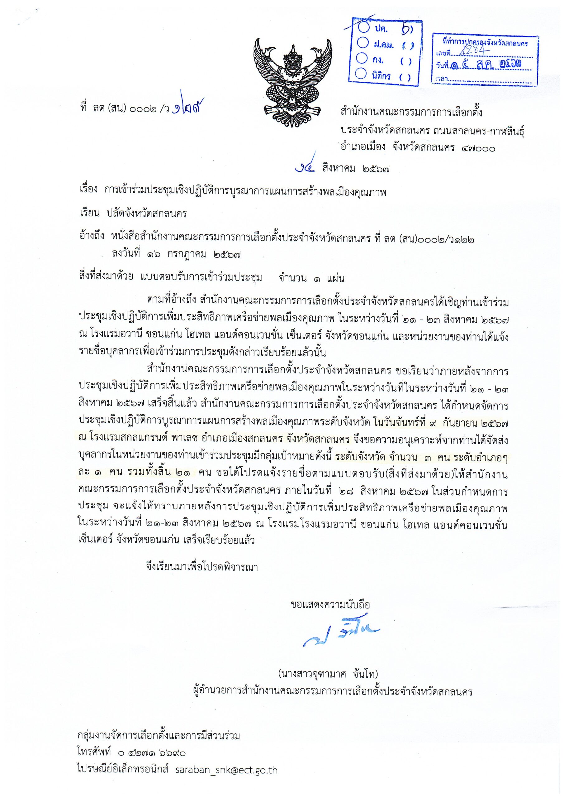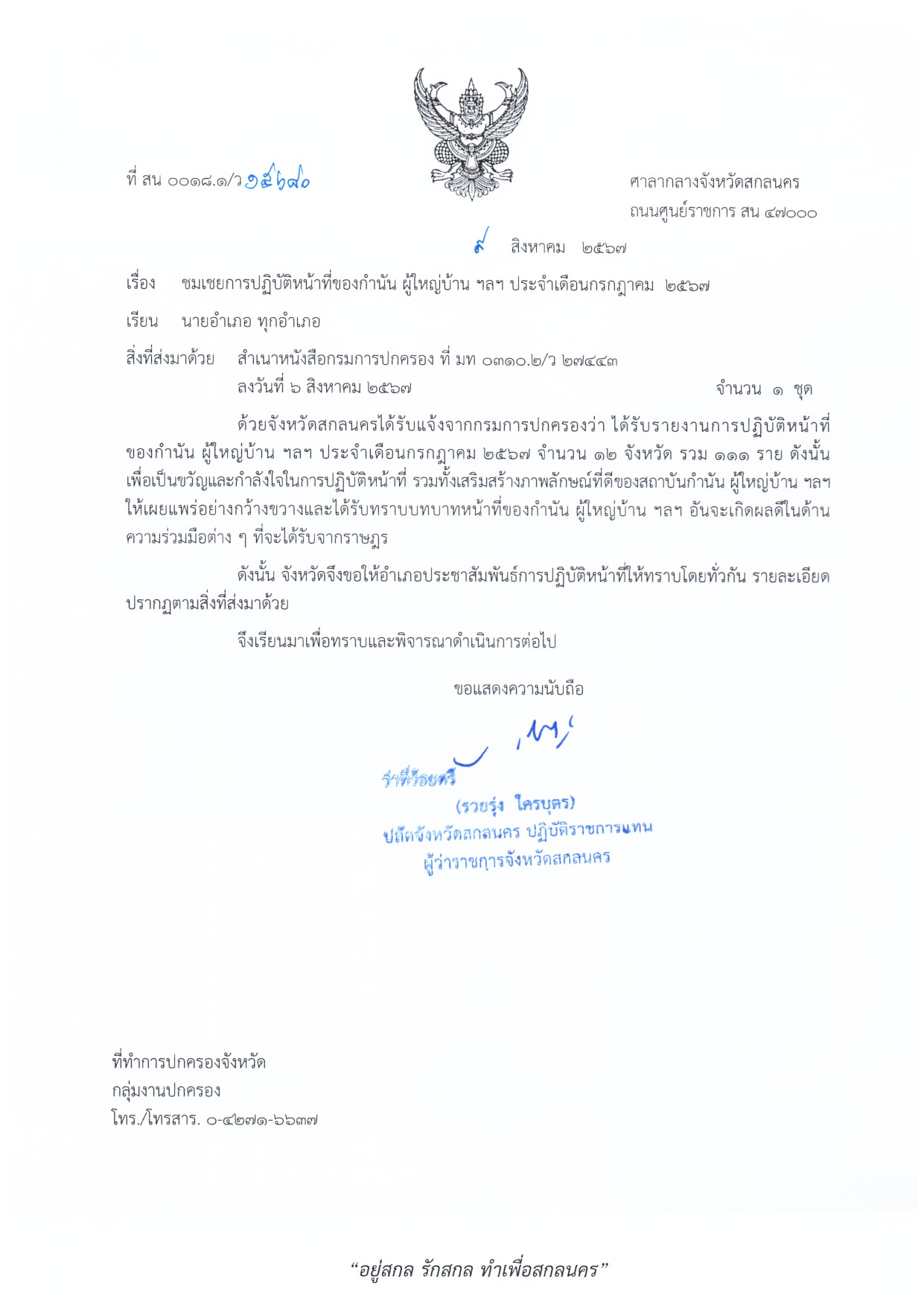 ที่ สน 0018.1/ 15716 ลงวันที่ 9 สิงหาคม 2567 เรียน นายอำเภอพังโคน เรื่อง ย้ายข้าราชการ DopaAdmin9 สิงหาคม 24กลุ่มงานปกครอง, ประกาศ/ระเบียบ/ดาวน์โหลด