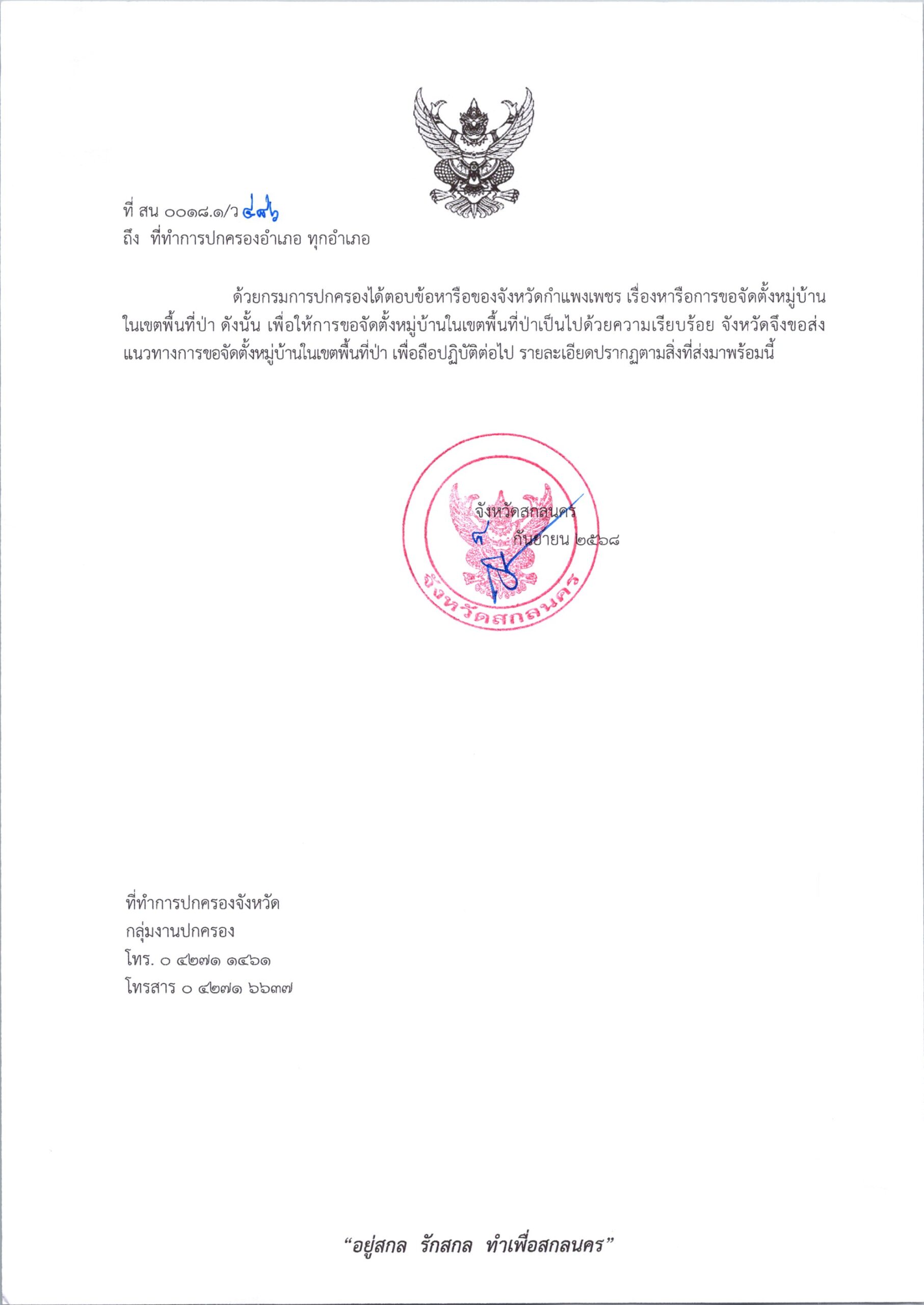 ที่ สน 0018.1/ว 17878 ลงวันที่ 3 กันยายน 2568 เรียน นายอำเภอกุดบาก คำตากล้า โคกศรีสุพรรณ พังโคน ภูพาน วานรนิวาส วาริชภูมิ สว่างแดนดิน และนายอำเภออากาศอำนวย เรื่อง การแต่งตั้งผู้ช่วยผู้ใหญ่บ้านฝ่ายรักษาความสงบ (ผรส.) เพิ่มเติม DopaAdmin3 กันยายน 25กลุ่มงานปกครอง, ข่าวประชาสัมพันธ์, ประกาศ/ระเบียบ/ดาวน์โหลด