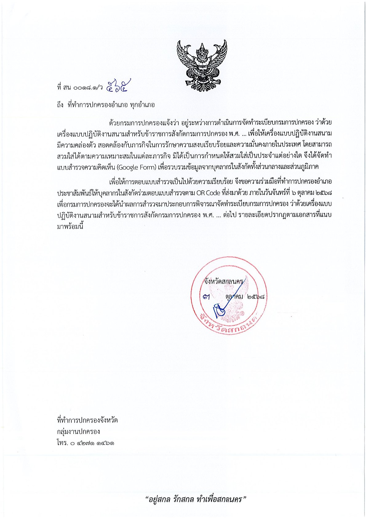 dopasakonnakhon.go.th/home/wp-content/uploads/2025/10/แจ้ง-ทุกอำเภอตอบแบบสำรวจเกี่ยวกับเครื่องแบบปฏิบัติงานสนามข้าราชการกรมการปคกรอง.pdf