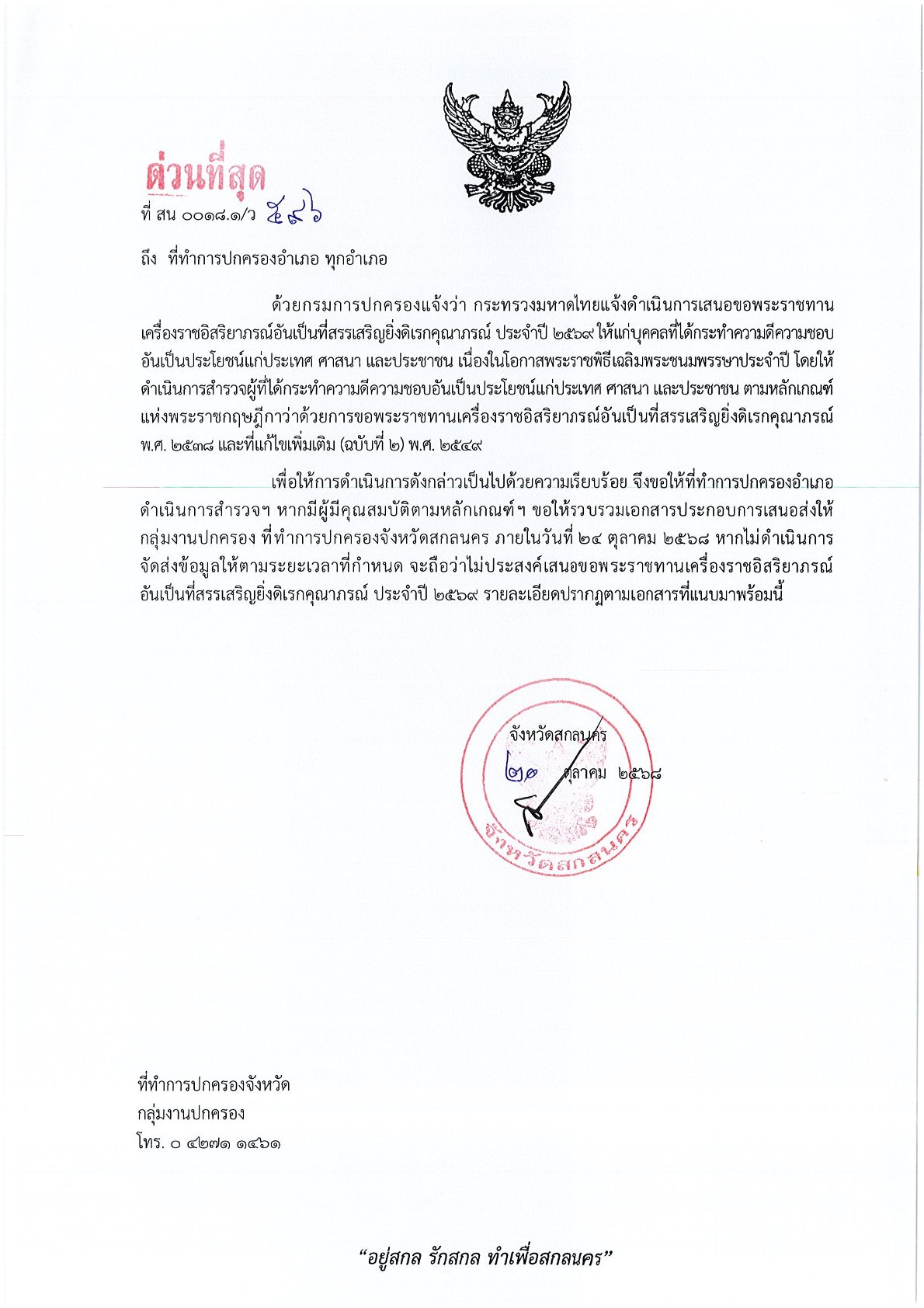 ด่วนที่สุด ที่ สน 0018.1/ว 596 ลงวันที่ 20 ตุลาคม 2568 เรียน ที่ทำการปกครองอำเภอ ทุกอำเภอ เรื่อง การเสนอขอพระราชทานเครื่องราชอิสริยาภรณ์อันเป็นที่สรรเสริญยิ่งดิเรกคุณาภรณ์ ประจำปี 2569 DopaAdmin20 ตุลาคม 25กลุ่มงานปกครอง, ประกาศ/ระเบียบ/ดาวน์โหลดด่วนที่สุด ที่ สน 0018.1/ว 596 ลงวันที่ 20 ตุลาคม 2568 เรียน ที่ทำการปกครองอำเภอ ทุกอำเภอ เรื่อง การเสนอขอพระราชทานเครื่องราชอิสริยาภรณ์อันเป็นที่สรรเสริญยิ่งดิเรกคุณาภรณ์ ประจำปี 2569 http://dopasakonnakhon.go.th/home/wp-content/uploads/2025/10/แจ้ง-ทุกอำเภอการขอเครื่องราชอิสริยาภรณ์อันเป็นที่สรรเสริญยิ่งดิเรกคุณาภรณ์-ประจำปี-2569.pdf อ่านแล้ว : 0 ด่วนที่สุด ที่ สน 0018.1/ว 596 ลงวันที่ 20 ตุลาคม 2568 เรียน ที่ทำการปกครองอำเภอ ทุกอำเภอ เรื่อง การเสนอขอพระราชทานเครื่องราชอิสริยาภรณ์อันเป็นที่สรรเสริญยิ่งดิเรกคุณาภรณ์ ประจำปี 2569 | ที่ทำการปกครองจังหวัดสกลนครFacebookด่วนที่สุด ที่ สน 0018.1/ว 596 ลงวันที่ 20 ตุลาคม 2568 เรียน ที่ทำการปกครองอำเภอ ทุกอำเภอ เรื่อง การเสนอขอพระราชทานเครื่องราชอิสริยาภรณ์อันเป็นที่สรรเสริญยิ่งดิเรกคุณาภรณ์ ประจำปี 2569 | ที่ทำการปกครองจังหวัดสกลนครXด่วนที่สุด ที่ สน 0018.1/ว 596 ลงวันที่ 20 ตุลาคม 2568 เรียน ที่ทำการปกครองอำเภอ ทุกอำเภอ เรื่อง การเสนอขอพระราชทานเครื่องราชอิสริยาภรณ์อันเป็นที่สรรเสริญยิ่งดิเรกคุณาภรณ์ ประจำปี 2569 | ที่ทำการปกครองจังหวัดสกลนครLine ใส่ความเห็น ยกเลิกการตอบอีเมลของคุณจะไม่แสดงให้คนอื่นเห็น ช่องข้อมูลจำเป็นถูกทำเครื่องหมาย *ชื่อ * อีเมล * เว็บไซต์ ความเห็น * บันทึกชื่อ, อีเมล และชื่อเว็บไซต์ของฉันบนเบราว์เซอร์นี้ สำหรับการแสดงความเห็นครั้งถัดไป