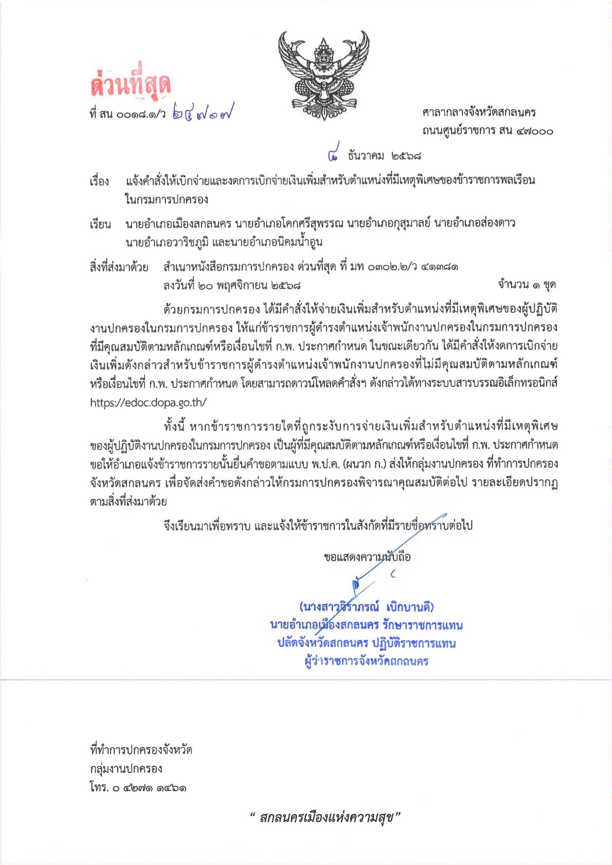ที่ สน 0018.1/ว 24707 ลงวันที่ 8 ธันวาคม 2568 เรียน นายอำเภอเมืองสกลนคร นายอำเภอโคกศรีสุพรรณ นายอำเภอกุสุมาลย์ นายอำเภอส่องดาว นายอำเภอวาริชภูมิ และนายอำเภอนิคมน้ำอูน เรื่อง แจ้งคำสั่งให้เบิกจ่ายและงดการเบิกจ่ายเงินเพิ่มสำหรับตำแหน่งที่มีเหตุพิเศษของข้าราชการพลเรือน ในกรมการปกครอง DopaAdmin8 ธันวาคม 25กลุ่มงานปกครอง, ประกาศ/ระเบียบ/ดาวน์โหลดที่ สน 0018.1/ว 24707 ลงวันที่ 8 ธันวาคม 2568 เรียน นายอำเภอเมืองสกลนคร นายอำเภอโคกศรีสุพรรณ นายอำเภอกุสุมาลย์ นายอำเภอส่องดาว นายอำเภอวาริชภูมิ และนายอำเภอนิคมน้ำอูน เรื่อง แจ้งคำสั่งให้เบิกจ่ายและงดการเบิกจ่ายเงินเพิ่มสำหรับตำแหน่งที่มีเหตุพิเศษของข้าราชการพลเรือน ในกรมการปกครอง http://dopasakonnakhon.go.th/home/wp-content/uploads/2025/12/แจ้ง-อ.เมืองโคกศรีกุสุมาลย์ส่องดาววาริชนิคมเงินเพิ่มปลัดอำเภอ.pdf อ่านแล้ว : 0 ที่ สน 0018.1/ว 24707 ลงวันที่ 8 ธันวาคม 2568 เรียน นายอำเภอเมืองสกลนคร นายอำเภอโคกศรีสุพรรณ นายอำเภอกุสุมาลย์ นายอำเภอส่องดาว นายอำเภอวาริชภูมิ และนายอำเภอนิคมน้ำอูน เรื่อง แจ้งคำสั่งให้เบิกจ่ายและงดการเบิกจ่ายเงินเพิ่มสำหรับตำแหน่งที่มีเหตุพิเศษของข้าราชการพลเรือน ในกรมการปกครอง | ที่ทำการปกครองจังหวัดสกลนครFacebookที่ สน 0018.1/ว 24707 ลงวันที่ 8 ธันวาคม 2568 เรียน นายอำเภอเมืองสกลนคร นายอำเภอโคกศรีสุพรรณ นายอำเภอกุสุมาลย์ นายอำเภอส่องดาว นายอำเภอวาริชภูมิ และนายอำเภอนิคมน้ำอูน เรื่อง แจ้งคำสั่งให้เบิกจ่ายและงดการเบิกจ่ายเงินเพิ่มสำหรับตำแหน่งที่มีเหตุพิเศษของข้าราชการพลเรือน ในกรมการปกครอง | ที่ทำการปกครองจังหวัดสกลนครXที่ สน 0018.1/ว 24707 ลงวันที่ 8 ธันวาคม 2568 เรียน นายอำเภอเมืองสกลนคร นายอำเภอโคกศรีสุพรรณ นายอำเภอกุสุมาลย์ นายอำเภอส่องดาว นายอำเภอวาริชภูมิ และนายอำเภอนิคมน้ำอูน เรื่อง แจ้งคำสั่งให้เบิกจ่ายและงดการเบิกจ่ายเงินเพิ่มสำหรับตำแหน่งที่มีเหตุพิเศษของข้าราชการพลเรือน ในกรมการปกครอง | ที่ทำการปกครองจังหวัดสกลนครLine ใส่ความเห็น ยกเลิกการตอบอีเมลของคุณจะไม่แสดงให้คนอื่นเห็น ช่องข้อมูลจำเป็นถูกทำเครื่องหมาย *ชื่อ * อีเมล * เว็บไซต์ ความเห็น * บันทึกชื่อ, อีเมล และชื่อเว็บไซต์ของฉันบนเบราว์เซอร์นี้ สำหรับการแสดงความเห็นครั้งถัดไป