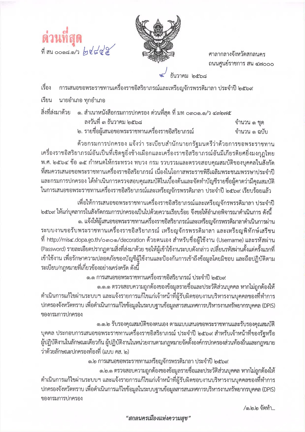 ด่วนที่สุด ที่ สน 0018.1/ว 24845 ลงวันที่ 9 ธันวาคม 2568 เรียน นายอำเภอ ทุกอำเภอ เรื่อง การเสนอขอพระราชทานเครื่องราชอิสริยาภรณ์และเหรียญจักรพรรดิมาลา ประจำปี 2569 DopaAdmin9 ธันวาคม 25กลุ่มงานปกครอง, ประกาศ/ระเบียบ/ดาวน์โหลดด่วนที่สุด ที่ สน 0018.1/ว 24845 ลงวันที่ 9 ธันวาคม 2568 เรียน นายอำเภอ ทุกอำเภอ เรื่อง การเสนอขอพระราชทานเครื่องราชอิสริยาภรณ์และเหรียญจักรพรรดิมาลา ประจำปี 2569 http://dopasakonnakhon.go.th/home/wp-content/uploads/2025/12/แจ้ง-ทุกอำเภอ-การเสนอขอเครื่องราชฯและเหรียญจักรฯมาลา-ปี-69.pdf อ่านแล้ว : 0 ด่วนที่สุด ที่ สน 0018.1/ว 24845 ลงวันที่ 9 ธันวาคม 2568 เรียน นายอำเภอ ทุกอำเภอ เรื่อง การเสนอขอพระราชทานเครื่องราชอิสริยาภรณ์และเหรียญจักรพรรดิมาลา ประจำปี 2569 | ที่ทำการปกครองจังหวัดสกลนครFacebookด่วนที่สุด ที่ สน 0018.1/ว 24845 ลงวันที่ 9 ธันวาคม 2568 เรียน นายอำเภอ ทุกอำเภอ เรื่อง การเสนอขอพระราชทานเครื่องราชอิสริยาภรณ์และเหรียญจักรพรรดิมาลา ประจำปี 2569 | ที่ทำการปกครองจังหวัดสกลนครXด่วนที่สุด ที่ สน 0018.1/ว 24845 ลงวันที่ 9 ธันวาคม 2568 เรียน นายอำเภอ ทุกอำเภอ เรื่อง การเสนอขอพระราชทานเครื่องราชอิสริยาภรณ์และเหรียญจักรพรรดิมาลา ประจำปี 2569 | ที่ทำการปกครองจังหวัดสกลนครLine ใส่ความเห็น ยกเลิกการตอบอีเมลของคุณจะไม่แสดงให้คนอื่นเห็น ช่องข้อมูลจำเป็นถูกทำเครื่องหมาย *ชื่อ * อีเมล * เว็บไซต์ ความเห็น * บันทึกชื่อ, อีเมล และชื่อเว็บไซต์ของฉันบนเบราว์เซอร์นี้ สำหรับการแสดงความเห็นครั้งถัดไป