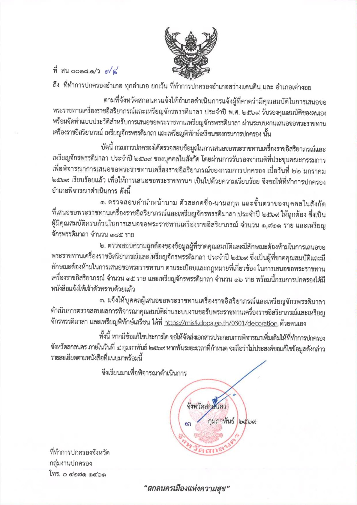 ที่ สน 0018.1/ว 78 ลงวันที่ 3 กุมภาพันธ์ 2569 เรียน ที่ทำการปกครองอำเภอ ทุกอำเภอ ยกเว้น ที่ทำการปกครองอำเภอสว่างแดนดิน และอำเภอเต่างอย DopaAdmin3 กุมภาพันธ์ 26กลุ่มงานปกครอง, ประกาศ/ระเบียบ/ดาวน์โหลดที่ สน 0018.1/ว 78 ลงวันที่ 3 กุมภาพันธ์ 2569 เรียน ที่ทำการปกครองอำเภอ ทุกอำเภอ ยกเว้น ที่ทำการปกครองอำเภอสว่างแดนดิน และอำเภอเต่างอย http://dopasakonnakhon.go.th/home/wp-content/uploads/2026/02/1.แจ้งอำเภอ.แจ้งผผลการเสนอขอเครื่องราชฯ-ปี-2569.pdf อ่านแล้ว : 0 ที่ สน 0018.1/ว 78 ลงวันที่ 3 กุมภาพันธ์ 2569 เรียน ที่ทำการปกครองอำเภอ ทุกอำเภอ ยกเว้น ที่ทำการปกครองอำเภอสว่างแดนดิน และอำเภอเต่างอย | ที่ทำการปกครองจังหวัดสกลนครFacebookที่ สน 0018.1/ว 78 ลงวันที่ 3 กุมภาพันธ์ 2569 เรียน ที่ทำการปกครองอำเภอ ทุกอำเภอ ยกเว้น ที่ทำการปกครองอำเภอสว่างแดนดิน และอำเภอเต่างอย | ที่ทำการปกครองจังหวัดสกลนครXที่ สน 0018.1/ว 78 ลงวันที่ 3 กุมภาพันธ์ 2569 เรียน ที่ทำการปกครองอำเภอ ทุกอำเภอ ยกเว้น ที่ทำการปกครองอำเภอสว่างแดนดิน และอำเภอเต่างอย | ที่ทำการปกครองจังหวัดสกลนครLine ใส่ความเห็น ยกเลิกการตอบอีเมลของคุณจะไม่แสดงให้คนอื่นเห็น ช่องข้อมูลจำเป็นถูกทำเครื่องหมาย *ชื่อ * อีเมล * เว็บไซต์ ความเห็น * บันทึกชื่อ, อีเมล และชื่อเว็บไซต์ของฉันบนเบราว์เซอร์นี้ สำหรับการแสดงความเห็นครั้งถัดไป