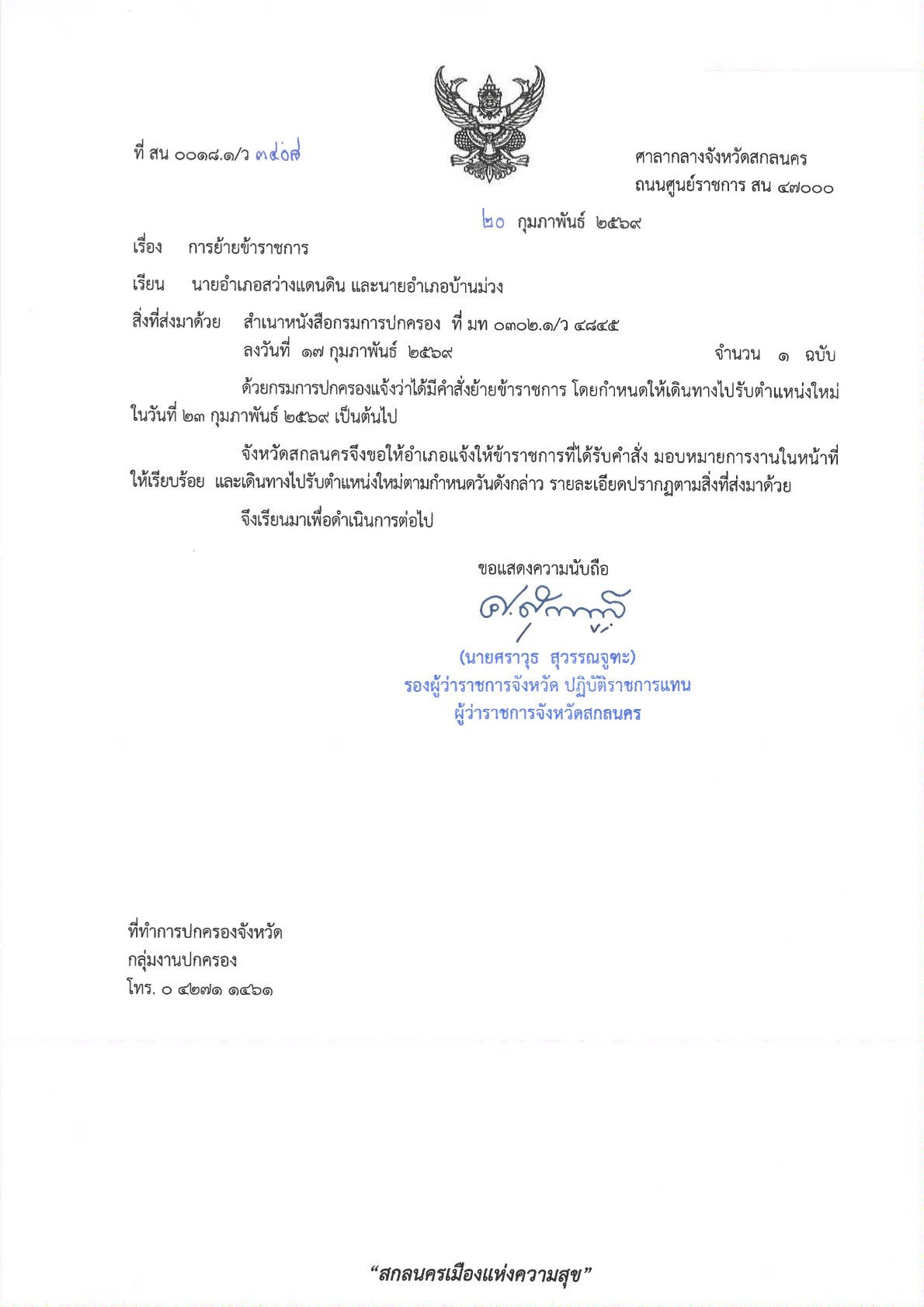 ที่ สน 0018.1/ว 3408 ลงวันที่ 20 กุมภาพันธ์ 2569 เรียน นายอำเภอสว่างแดนดิน และนายอำเภอบ้านม่วง เรื่อง การย้ายข้าราชการ DopaAdmin20 กุมภาพันธ์ 26กลุ่มงานปกครอง, ประกาศ/ระเบียบ/ดาวน์โหลดที่ สน 0018.1/ว 3408 ลงวันที่ 20 กุมภาพันธ์ 2569 เรียน นายอำเภอสว่างแดนดิน และนายอำเภอบ้านม่วง เรื่อง การย้ายข้าราชการ http://dopasakonnakhon.go.th/home/wp-content/uploads/2026/02/แจ้ง-อ.สว่างฯบ้านม่วงการย้ายข้าราชการ.pdf อ่านแล้ว : 0 ที่ สน 0018.1/ว 3408 ลงวันที่ 20 กุมภาพันธ์ 2569 เรียน นายอำเภอสว่างแดนดิน และนายอำเภอบ้านม่วง เรื่อง การย้ายข้าราชการ | ที่ทำการปกครองจังหวัดสกลนครFacebookที่ สน 0018.1/ว 3408 ลงวันที่ 20 กุมภาพันธ์ 2569 เรียน นายอำเภอสว่างแดนดิน และนายอำเภอบ้านม่วง เรื่อง การย้ายข้าราชการ | ที่ทำการปกครองจังหวัดสกลนครXที่ สน 0018.1/ว 3408 ลงวันที่ 20 กุมภาพันธ์ 2569 เรียน นายอำเภอสว่างแดนดิน และนายอำเภอบ้านม่วง เรื่อง การย้ายข้าราชการ | ที่ทำการปกครองจังหวัดสกลนครLine ใส่ความเห็น ยกเลิกการตอบอีเมลของคุณจะไม่แสดงให้คนอื่นเห็น ช่องข้อมูลจำเป็นถูกทำเครื่องหมาย *ชื่อ * อีเมล * เว็บไซต์ ความเห็น * บันทึกชื่อ, อีเมล และชื่อเว็บไซต์ของฉันบนเบราว์เซอร์นี้ สำหรับการแสดงความเห็นครั้งถัดไป