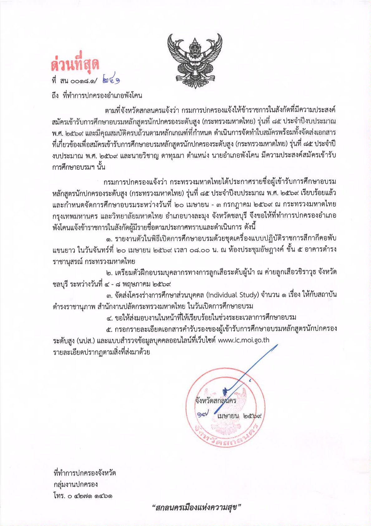 ด่วนที่สุด ที่ สน 0018.1/ 241 ลงวันที่ 17 เมษายน 2569 เรียน ที่ทำการปกครองอำเภอพังโคน เรื่อง การศึกษาอบรมหลักสูตรนักปกครองระดับสูง (กระทรวงมหาดไทย) รุ่นที่ 85 ประจำปีงบประมาณ พ.ศ. 2569 DopaAdmin17 เมษายน 26กลุ่มงานปกครอง, ประกาศ/ระเบียบ/ดาวน์โหลดด่วนที่สุด ที่ สน 0018.1/ 241 ลงวันที่ 17 เมษายน 2569 เรียน ที่ทำการปกครองอำเภอพังโคน เรื่อง การศึกษาอบรมหลักสูตรนักปกครองระดับสูง (กระทรวงมหาดไทย) รุ่นที่ 85 ประจำปีงบประมาณ พ.ศ. 2569 http://dopasakonnakhon.go.th/home/wp-content/uploads/2026/04/241.pdf อ่านแล้ว : 0 FacebookFacebookXXLINELine ใส่ความเห็น ยกเลิกการตอบอีเมลของคุณจะไม่แสดงให้คนอื่นเห็น ช่องข้อมูลจำเป็นถูกทำเครื่องหมาย *ชื่อ * อีเมล * เว็บไซต์ ความเห็น * บันทึกชื่อ, อีเมล และชื่อเว็บไซต์ของฉันบนเบราว์เซอร์นี้ สำหรับการแสดงความเห็นครั้งถัดไป