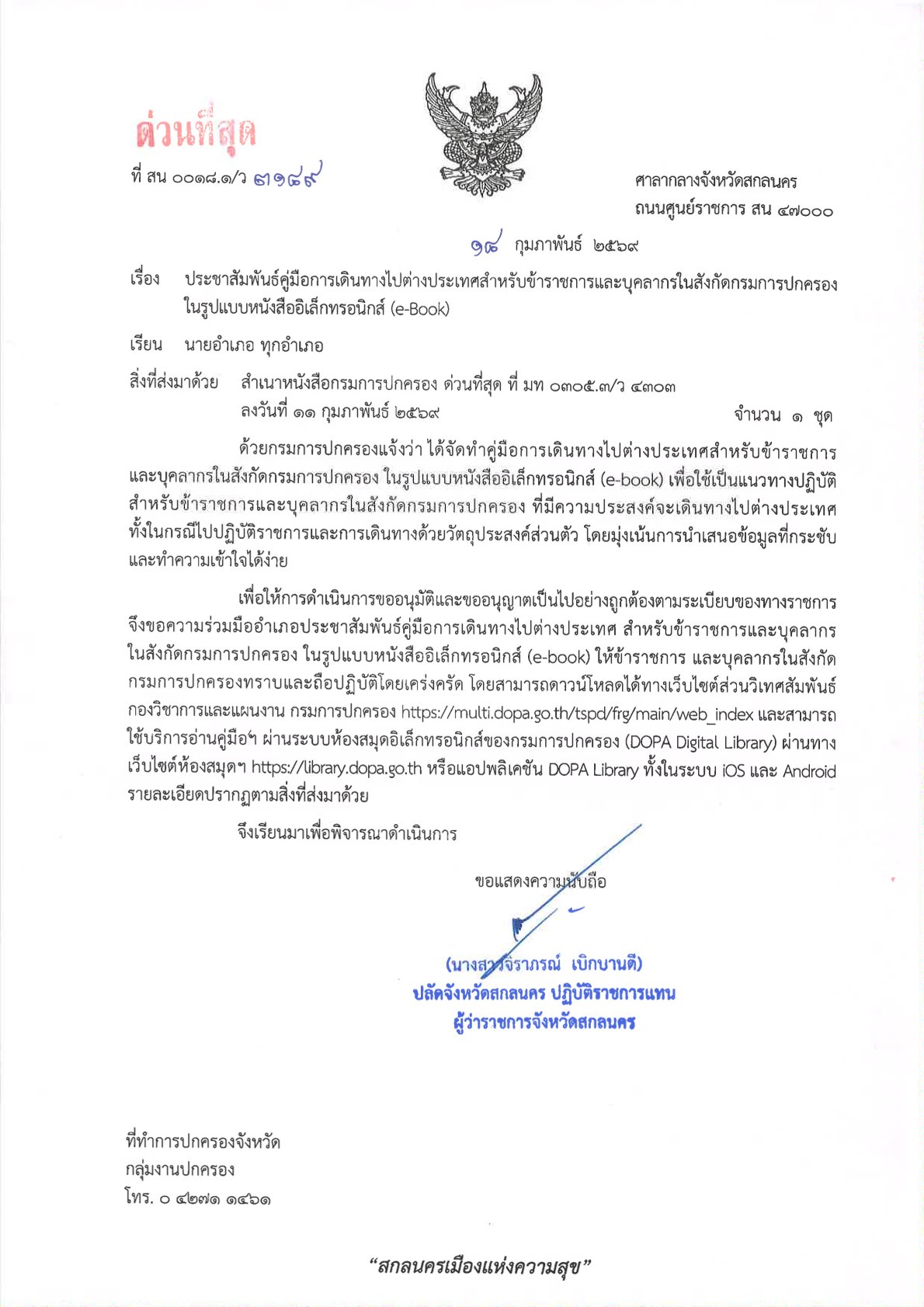 ด่วนที่สุด ที่ สน 0018.1/ว 3189 ลงวันที่ 18 กุมภาพันธ์ 2569 เรียน นายอำเภอ ทุกอำเภอ เรื่อง ประชาสัมพันธ์คู่มือการเดินทางไปต่างประเทศสำหรับข้าราชการและบุคลากรในสังกัดกรมการปกครอง ในรูปแบบหนังสืออิเล็กทรอนิกส์ (e-Book) DopaAdmin18 กุมภาพันธ์ 26กลุ่มงานปกครอง, ข่าวประชาสัมพันธ์, ประกาศ/ระเบียบ/ดาวน์โหลดด่วนที่สุด ที่ สน 0018.1/ว 3189 ลงวันที่ 18 กุมภาพันธ์ 2569 เรียน นายอำเภอ ทุกอำเภอ เรื่อง ประชาสัมพันธ์คู่มือการเดินทางไปต่างประเทศสำหรับข้าราชการและบุคลากรในสังกัดกรมการปกครอง ในรูปแบบหนังสืออิเล็กทรอนิกส์ (e-Book) http://dopasakonnakhon.go.th/home/wp-content/uploads/2026/02/แจ้ง-ทุกอำเภอ-ประชาสัมพันธ์คู่มือแนวทางปฏิบัติ-การเดินทางไปต่างประเทศของบุคลากร-ปค.pdf อ่านแล้ว : 0 ด่วนที่สุด ที่ สน 0018.1/ว 3189 ลงวันที่ 18 กุมภาพันธ์ 2569 เรียน นายอำเภอ ทุกอำเภอ เรื่อง ประชาสัมพันธ์คู่มือการเดินทางไปต่างประเทศสำหรับข้าราชการและบุคลากรในสังกัดกรมการปกครอง ในรูปแบบหนังสืออิเล็กทรอนิกส์ (e-Book) | ที่ทำการปกครองจังหวัดสกลนครFacebookด่วนที่สุด ที่ สน 0018.1/ว 3189 ลงวันที่ 18 กุมภาพันธ์ 2569 เรียน นายอำเภอ ทุกอำเภอ เรื่อง ประชาสัมพันธ์คู่มือการเดินทางไปต่างประเทศสำหรับข้าราชการและบุคลากรในสังกัดกรมการปกครอง ในรูปแบบหนังสืออิเล็กทรอนิกส์ (e-Book) | ที่ทำการปกครองจังหวัดสกลนครXด่วนที่สุด ที่ สน 0018.1/ว 3189 ลงวันที่ 18 กุมภาพันธ์ 2569 เรียน นายอำเภอ ทุกอำเภอ เรื่อง ประชาสัมพันธ์คู่มือการเดินทางไปต่างประเทศสำหรับข้าราชการและบุคลากรในสังกัดกรมการปกครอง ในรูปแบบหนังสืออิเล็กทรอนิกส์ (e-Book) | ที่ทำการปกครองจังหวัดสกลนครLine ใส่ความเห็น ยกเลิกการตอบอีเมลของคุณจะไม่แสดงให้คนอื่นเห็น ช่องข้อมูลจำเป็นถูกทำเครื่องหมาย *ชื่อ * อีเมล * เว็บไซต์ ความเห็น * บันทึกชื่อ, อีเมล และชื่อเว็บไซต์ของฉันบนเบราว์เซอร์นี้ สำหรับการแสดงความเห็นครั้งถัดไป
