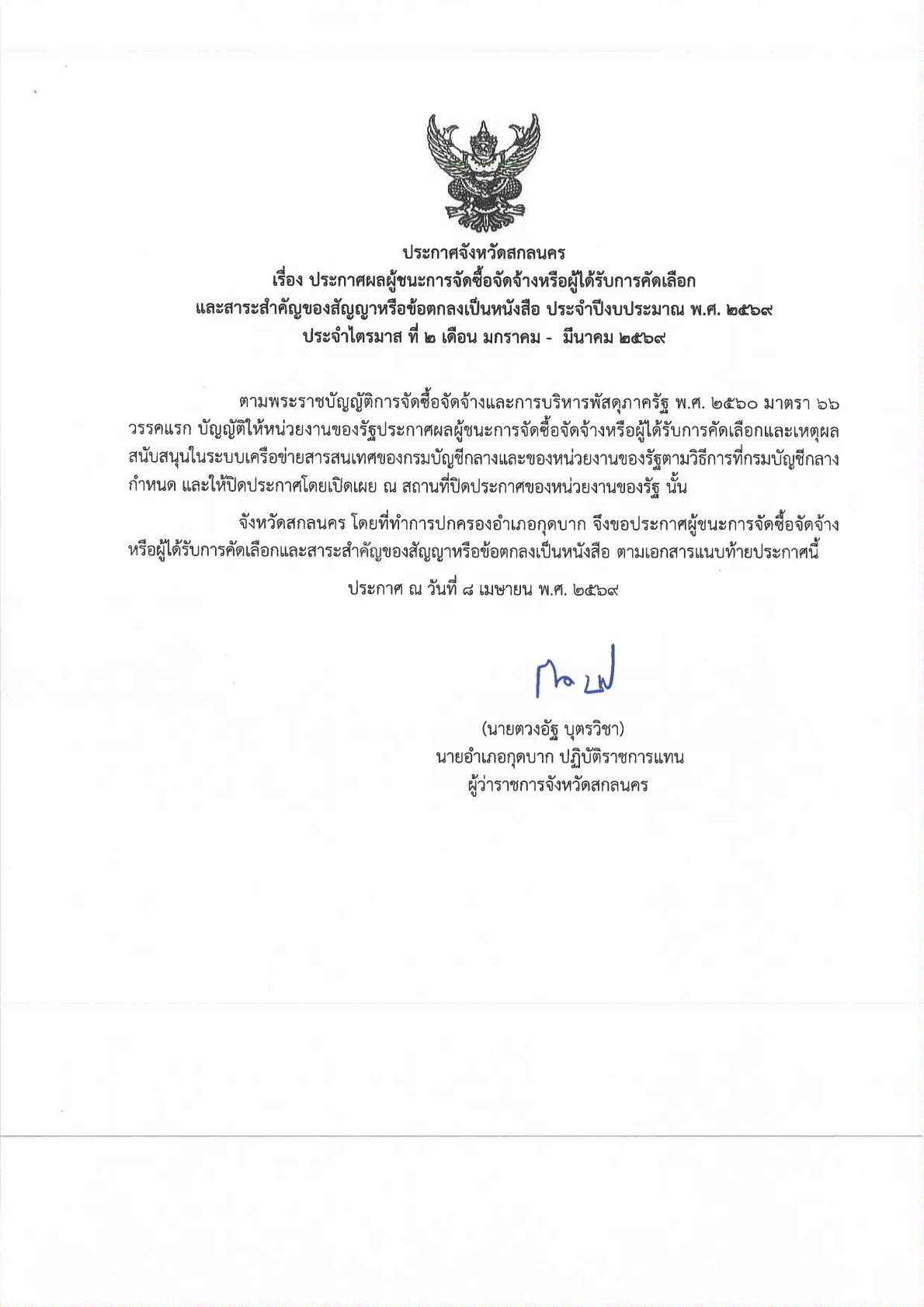 ประกาศจังหวัดสกลนคร เรื่อง ประกาศผลผู้ชนะการจัดซื้อจัดจ้างหรือผู้ได้รับการคัดเลือก และสาระสำคัญของสัญญาหรือข้อตกลงเป็นหนังสือ ประจำปีงบประมาณ พ.ศ. 2569 ประจำไตรมาส ที่ 2 เดือน มกราคม – มีนาคม 2569 DopaAdmin10 เมษายน 26กลุ่มงานปกครอง, ข่าวประชาสัมพันธ์, ประกาศ/ระเบียบ/ดาวน์โหลดประกาศจังหวัดสกลนคร เรื่อง ประกาศผลผู้ชนะการจัดซื้อจัดจ้างหรือผู้ได้รับการคัดเลือก และสาระสำคัญของสัญญาหรือข้อตกลงเป็นหนังสือ ประจำปีงบประมาณ พ.ศ. 2569 ประจำไตรมาส ที่ 2 เดือน มกราคม - มีนาคม 2569 http://dopasakonnakhon.go.th/home/wp-content/uploads/2026/04/ประกาศ-จ.สน.-เรื่อง-ประกาศผลผู้ชนะการจัดซื้อจัดจ้างหรือผู้ได้รับคัดเลือกฯ-อ.กุดบาก.pdf อ่านแล้ว : 0 FacebookFacebookXXLINELine ใส่ความเห็น ยกเลิกการตอบอีเมลของคุณจะไม่แสดงให้คนอื่นเห็น ช่องข้อมูลจำเป็นถูกทำเครื่องหมาย *ชื่อ * อีเมล * เว็บไซต์ ความเห็น * บันทึกชื่อ, อีเมล และชื่อเว็บไซต์ของฉันบนเบราว์เซอร์นี้ สำหรับการแสดงความเห็นครั้งถัดไป